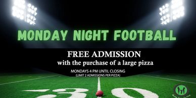Earn free admission during Monday Night Football by purchasing a large pizza!