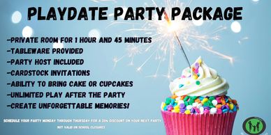 20% off parties scheduled Mon-Thurs! (not valid SPS closures)
